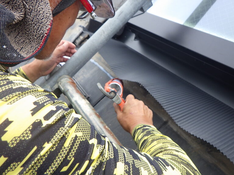 宇都宮市の天窓交換工事で厚型スレート屋根材を葺き直しました 天窓エプロンの固定中です 天窓軒先側の雨仕舞で 鉛製のエプロンを取り付けますが 両面防水テープだけでは剥がれますので シーリング材を入れて補強していきます 天窓エプロン部の固定が終了 ...続きを読む2025/11/8 下松市でサイディング外壁とスレート屋根の点検を行いました