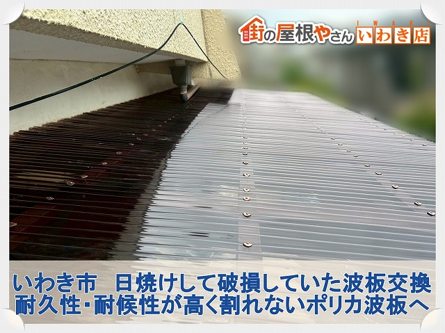 草加市で屋根メンテナンス!雨漏りしていない今がチャンス! 🎶草加市のみなさまこんにちは 街の屋根やさん越谷店です🎶 いつも街の屋根やさん越谷店のブログをご覧いただきありがとうございます ...続きを読む2025/10/31 いわき市にて波板の屋根工事。耐久性の高いポリカ波板を使用したおすすめ屋根工事