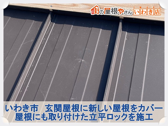 築35年の土浦市マンションの大規模修繕が完了!オーナー様もご満足の仕上がりに! 土浦市のみなさまこんにちは。街の屋根やさん土浦店です。今日は土浦市マンション大規模修繕工事の中から、まだご紹介していなかった共用部の塗装メンテナンスの様子をお届けします! ...続きを読む2025/10/31 いわき市にて傷んだ玄関庇の上に新しい屋根を作成。屋根と同じ立平ロックを施工