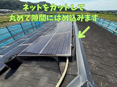 2025/10/27 可児市のアパート屋根にて太陽光パネル下へ鳥避けネット設置!巣の再発防止対策