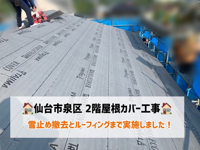 こんにちは。街の屋根やさん岸和田店です。阪南市で台風被害により「家や塀の瓦が壊れて困っている…」そんなお悩みはございませんか? 今回、阪南市Y様邸の塀の修理をご依頼いただきました。劣化した漆喰を丁寧に剥がし、新しい漆喰で補強しながら、割れていた棟瓦や平瓦も交換することになりました。見た目の美しさ ...続きを読む2025/10/23 仙台市泉区にて2階屋根のカバー工事の下準備!雪止め撤去からルーフィングまで実施!