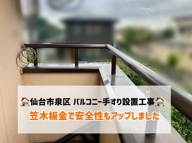 こんにちは。街の屋根やさん岸和田店です。 台風の強風で工場の屋根が被害を受けてお困りではありませんか? 阪南市Y様の工場では、小波スレートの平屋屋根の棟板金が台風で剥がれ、雨漏りの危険性が高まっていました☔棟板金の剥がれを放置すると、剥がれた隙間から雨水が侵入し、屋根材の劣化や工場内への雨漏 ...続きを読む2025/10/23 仙台市泉区にてバルコニーにアルミ手すりを設置!笠木板金でカバーし安全性もアップ!