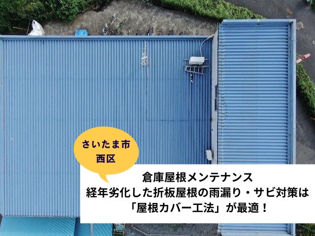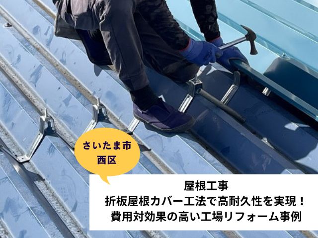 はじめに 八王子市にお住まいの皆様、築年数が経過した屋根の状態をチェックしていますか? 屋根は家の中で最も重要な部分の一つであり、日々の風雨から家を守る大事な役割を果たしています。しかし、築30年が経過したスレート屋根では、劣化が進んでいることが多いです。今回は、スレート ...続きを読む2025/10/22 さいたま市西区 倉庫屋根メンテナンス!経年劣化した折板屋根の雨漏り・サビ対策は「屋根カバー工法」が最適!
