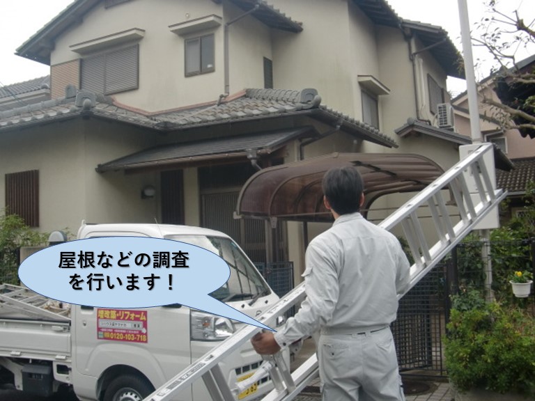 岸和田市の屋根の仮養生(応急処置)のご紹介です。台風21号で1階と2階のお部屋で雨漏りが発生し、その後、雨が降るたびに雨漏りするそうです。屋根を修理する前にとにかく雨漏りの心配をなくしたい、とのことで屋根の養生をご希望でした。 屋根の ...続きを読む2025/10/20 泉佐野市の陸屋根防水と躯体補修、外壁塗装の現地調査をご紹介