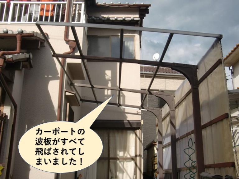 2025/10/20 泉南市のカーポートの屋根の波板が飛散しポリカ波板を張りました