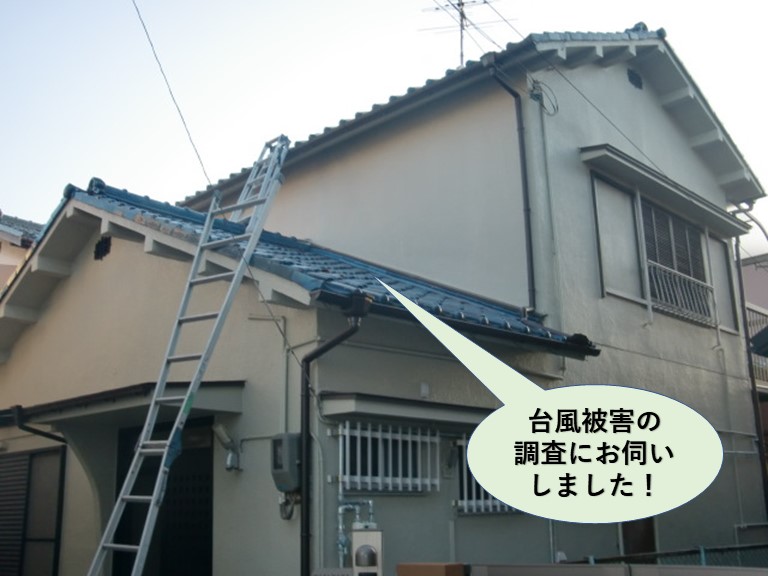 岸和田市の台風被害と雨漏りの現地調査にお伺いしました。I様邸は和瓦の屋根で、台風21号で袖瓦(屋根のケラバ部分の役物瓦)が飛散し、地瓦(屋根の平場で使用する瓦)も飛散や割れが数カ所にある状態で、台風の時に玄関の天井で雨漏りが発生し、ブルーシートで養生されていました。また、近くにある工場の波型スレ ...続きを読む2025/10/20 岸和田市で台風で青い釉薬瓦が飛散し雨漏りが発生したとのご相談