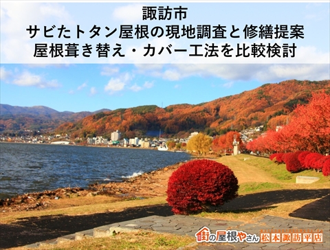 2025年10月17日 更新 冬の長野は、雪や氷で滑りやすくなる季節。特に屋根の雪解け水が通路に流れ出すと、朝晩の冷え込みで凍結し、転倒や事故の原因になります。今回ご紹介するのは、長野市横沢町(善光寺近く)での雨どい取り付け工事。「お蔵へ続く通路が凍って危 ...続きを読む2025/10/17 諏訪市|サビたトタン屋根の現地調査と修繕提案|屋根葺き替え・カバー工法を比較検討
