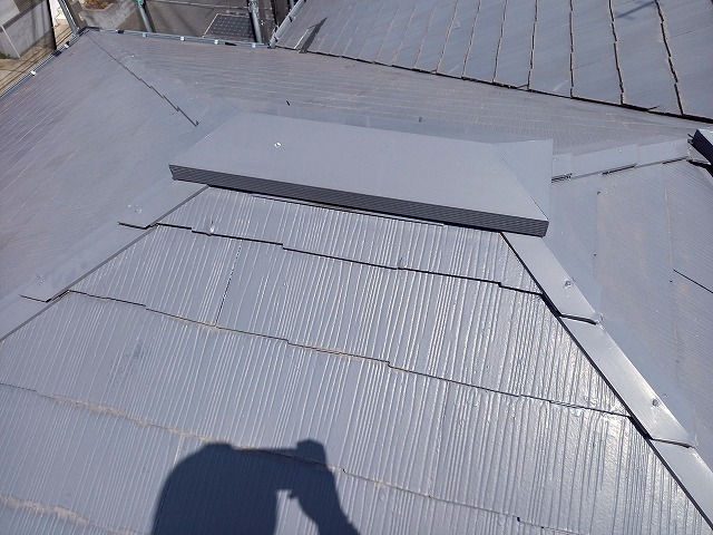 忠岡町の屋根葺き替え工事完了後、軒天井や鼻隠しなどの改修を行いました。今回は軒天井及び鼻隠しの塗装の様子をご紹介します。鼻隠しとは、屋根の雨樋が付いているほうの軒先の側面に張る板のことで、軒天井は軒先の天井のことです。 ...続きを読む2025/10/15 熊本市中央区で雨の後に発生する雨漏りの原因調査!棟板金の継ぎ目から侵入していました