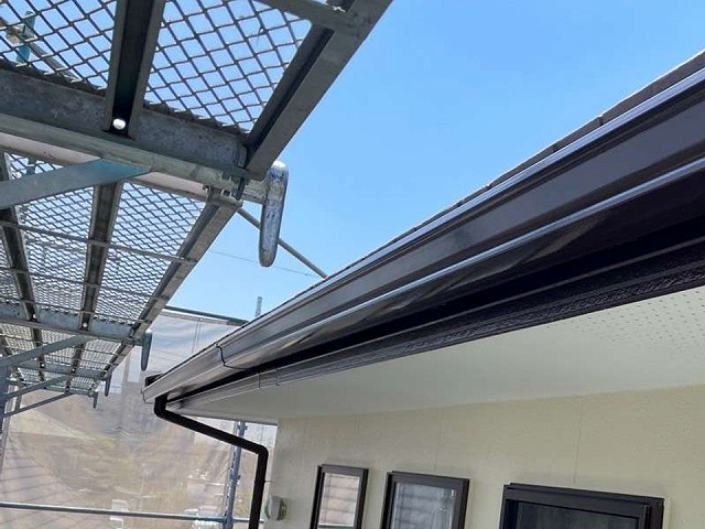忠岡町の屋根葺き替え工事で前回、新しい屋根の水切り板金の取付などをご紹介しました。今回は、カラーベスト、コロニアルグラッサの施工をお伝えします。T様邸は台風21号で屋根の瓦が割れるなどの被害に遭い雨漏りも発生しました。今後発生するかもしれない地震や台風のことを踏まえて、軽い屋根材に葺き替えることになりました。 ...続きを読む2025/10/15 忠岡町の軒天井や鼻隠しのメンテナンスで塗装を行いました