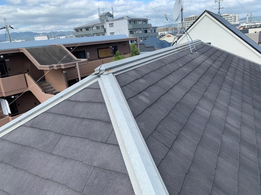 ※2023年6月21日更新皆さんお疲れ様です!街の屋根やさん神戸西店です。 今日は三木市で行った「屋根カバー工事」の様子をご紹介したいと思います(^^)/ 【屋根カバー工事】 既存の屋根材を撤去せず上から新しい屋根材を被せる工事です。葺き替え工事に比べて費用が安く済み、塗装するよりも圧倒的に耐久 ...続きを読む2024/01/10 神戸市垂水区で棟板金を取り付けました。天窓付き屋根葺き替え工事の仕上げ作業です。