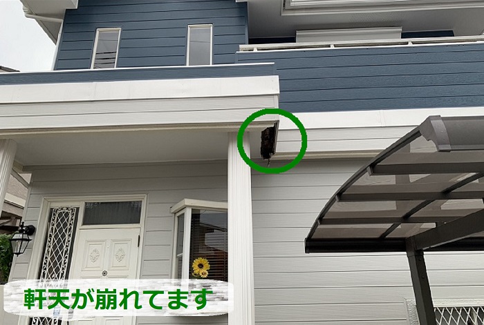 泉大津市のT様より「雨樋が詰まっていて、お隣の方に迷惑をかけてるので掃除とかしてもらえますか?」とのご相談をいただき現地調査にお伺いしました。 雨樋の清掃のご相談は実は多くございます。普段はあまり気にすることが ...続きを読む2026/02/18 三田市 軒天が崩れた原因は雨漏り?専門業者が修理見積もりを実施!