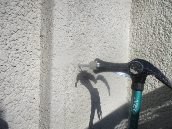 鹿沼市で玄関雨樋の横打金具と鎖樋を取り付けました。 雨樋の竪樋金具を取り付けました。 既存の竪樋金具が取り付けてあった同じ場所に、新規の竪樋金具を取り付けていきます。 竪樋を取り付けたときに、外壁と平行になるように打ち込み深さを均一にして取り付けました。 ...続きを読む2026/04/8 鹿沼市で軒天重ね貼りと雨樋交換、玄関柱束石補修工事が終了しました