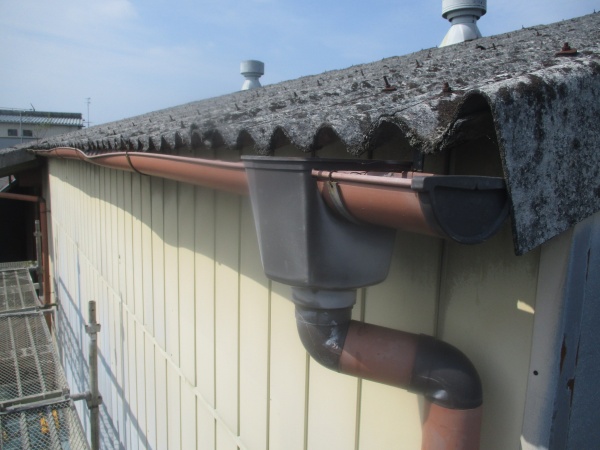 鹿沼市でパナソニック製アイアンを使い雨樋の交換工事をしました。 施工前の軒樋の状態です。 波型スレート屋根に取り付けた軒樋の中心部分が、外側に大きく広がり曲がっています。 雪止めが無い事が原因か、雪の荷重で曲がったものと考えられます。 ...続きを読む2026/04/8 鹿沼市の商業施設でパナソニックのアイアンを取り付けました。