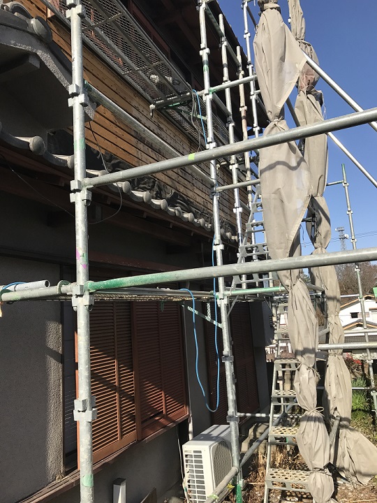 伊賀市で築30年になる屋根をリフォームさせていただきました! 陶器瓦の和形から平板形に形状を替えましたが、自然な仕上がりです 前回までの様子はこちらから ↓↓↓↓↓ 【大屋根】 ①瓦おろし・野地板工事編 ②桟葺き工事編 ③袖瓦取付・ ...続きを読む2026/03/10 名張市で外壁塗装に必要な足場を組立てていきます