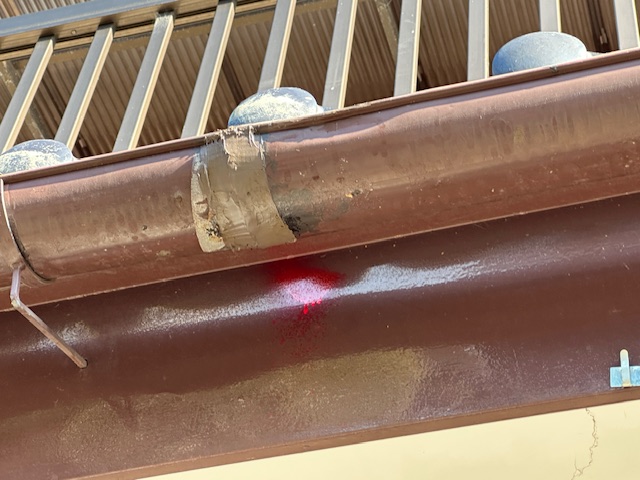 「雨漏りしていて…きちんと直したいんです。」 可児市今渡、築約30年のお住まいです。まずはドローンを使って、屋根全体の状態を確認しました。全体的に色あせが目立ち、艶がなくなっています。パッと見では大きな破損はありませんが、表面の防水機能が弱っている印象です ...続きを読む2026/03/7 東大阪市瓢箪山|屋根の溝に水が!雨漏り寸前のサビを部分修理で解決