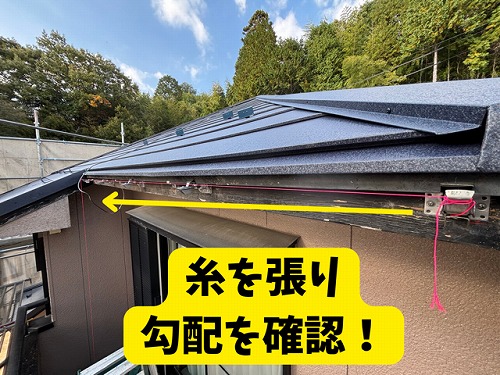 屋根工事とあわせて行っている雨樋交換工事の様子をご紹介します。雨樋は、台風や大雨のときに屋根に降った雨水をスムーズに流すための大切な設備です。今回は、その雨樋を支える「樋受金具(というけかなぐ)」の取り付け工程についてお伝えします。 ◆集水器に向かって勾配を確認しながら取 ...続きを読む2026/01/9 【熊本市北区】築50年瓦屋根の谷板金張替え工事|雨漏り原因を1日で根本から解消
