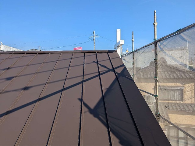 こんにちは。街の屋根やさん名古屋南店です。 前回のブログでは、愛知郡東郷町の宗教施設建物で雨漏り修理のため実施した屋根カバー工事の棟板金の設置についてお伝えいたしました。 今回は、これまで行ってきた屋根カバー工事の完成後の出来栄えについて、ご紹介したいと思います。 ...続きを読む2026/01/9 明石市でパラペット内部の立平屋根改修後に左官下地処理|雨漏りを防ぐための重要工程とは