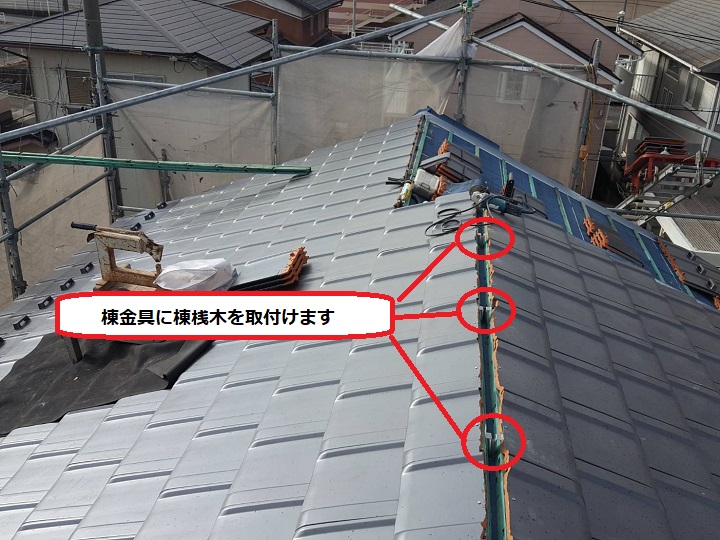 全体に瓦を葺いた後は、棟(むね)の部分と袖(そで)の部分の施工をします。前回までの様子はこちらでご確認ください!↓↓↓↓↓①瓦おろし・野地板工事編②桟葺き工事編まずは棟の部分から行います。平板瓦(へいばんがわら)は日本瓦と違い、棟瓦(むねがわら)を積まず、棟桟木(むねさんぎ)に三角冠を取付けて棟 ...続きを読む2026/01/16 【志免町】瓦屋根のズレ・老朽化を解消|オークリッジスーパー葺き替えと棟板金仕上げ