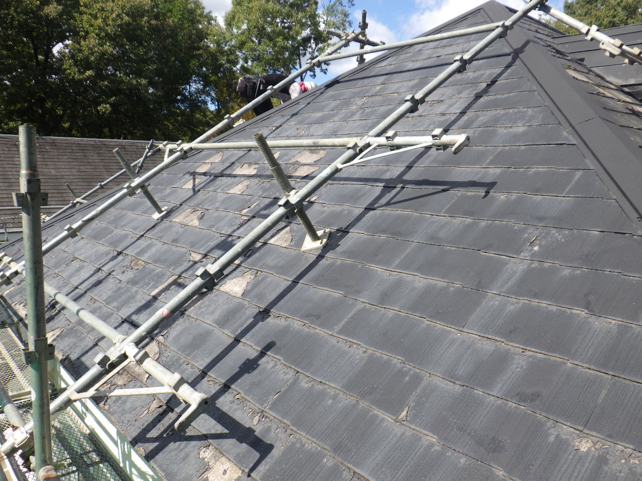 那須町でスレート屋根からアスファルトシングルへカバー工事をしました 施工前の屋根の状態です 写真でも確認できますが傷んだ塗装塗膜がスレート屋根材の素地から剥がれている状態で 始め ...続きを読む2026/01/22 岸和田市の棟瓦取り直し工事/既存の瓦の撤去までをご紹介します!