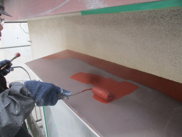 鹿沼市の外壁、室内塗装と雨樋交換工事です。 出窓の天板のさび止め塗装中です。 板金製の天板に下塗りとしてさび止めを塗装しますが、外壁との取り合いを刷毛で見切り塗装してから、ローラーで全体を塗装しました。 乾燥前に刷毛塗装との境目を、ローラーで消すように塗装していきます。 ...続きを読む2026/04/9 鹿沼市で1階に車庫のある住宅の外壁塗装をしました。