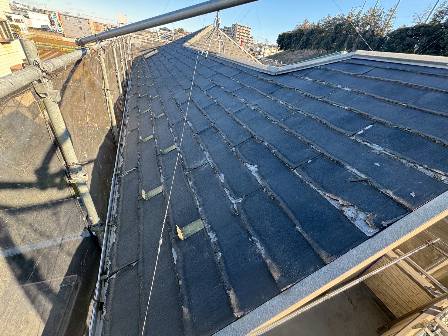 阪南市で台風被害に遭った屋根の修理を行いました。2年前の台風で屋根の瓦が数枚割れて、応急処置した状態で様子を見ていたそうですが、月日とともに防水シートが傷んできてめくれたり飛ばされてしまったので「きちんと修理してほしい」と街の屋根やさん岸和田店にご相談をいただきま ...続きを読む2026/02/25 狭山市 スレート屋根ってどんな屋根なの?メンテナンス方法は何が正解?
