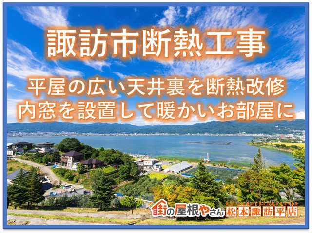 こんにちは!街の屋根やさん神戸店です。先日、伊丹市にお住まいの方から『雨漏りがひどいので屋根の調査をしてほしい』とのご依頼があり、無料お住まい調査に伺いました。全体的に綺麗な瓦屋根でしたが、漆喰の経年劣化が進んでおり、かなりの雨水が屋根裏に浸入している状態でした。瓦屋根の漆喰の劣化でなぜひどい雨漏りが起きるの ...続きを読む2024/03/15 諏訪市断熱工事|平屋の広い天井裏を断熱改修|内窓も設置して暖かいお部屋に