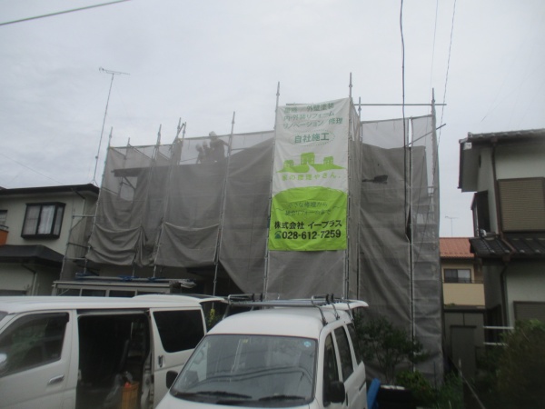 鹿沼市の2階建て住宅に雨樋の破損による現場調査に行って来ました。全体的に軒樋(軒先に横に付いている雨樋)の破損があるようです。特に南面の破損が激しいようですが全体の調査をして行こうと思います。 南面の一階部分の軒樋の状況です。 ...続きを読む2026/04/9 鹿沼市の外壁塗装工事で軒天と外壁の下塗り中塗りをしました。
