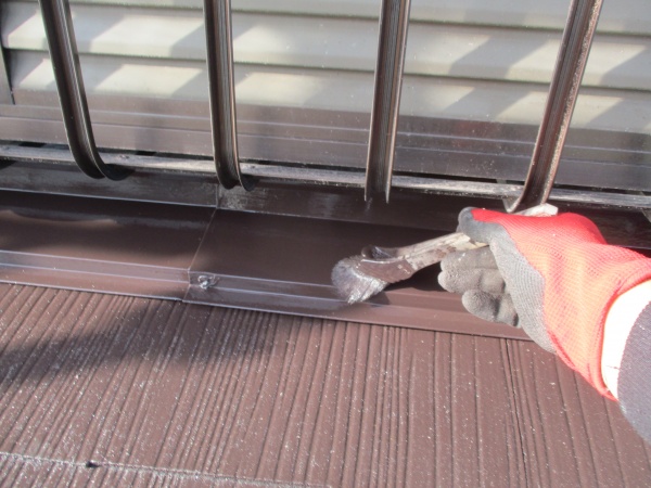 鹿沼市のコロニアル屋根塗装工事が完工しました。 1階コロニアル屋根の、壁水切りを刷毛塗装中です。 戸袋下や狭くてローラーではきれいに塗装出来ない所を、刷毛で塗装しました。水切り部分など凹凸がある所も、刷毛で塗装しました。 コロ ...続きを読む2026/04/9 鹿沼市の屋根重ね葺き工事で剣先と棟包み板金を取り付けました。
