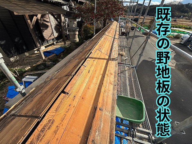 瓦撤去後に確認した下地の劣化 前回の可児市御嵩町にて塀の葺き替え工事の解体作業で、既存の瓦をすべて撤去しました。瓦の下を確認すると、野地板が貼ってありますが、薄い板が貼ってあったため強度に不安が残ります。瓦を支える下地が傷んでしまうと瓦をしっかり固定できな ...続きを読む2026/04/21 可児市御嵩町の一軒家にて門の葺き替え工事|近年の桟打ち施工と昔の土葺きとの違い・耐震工法