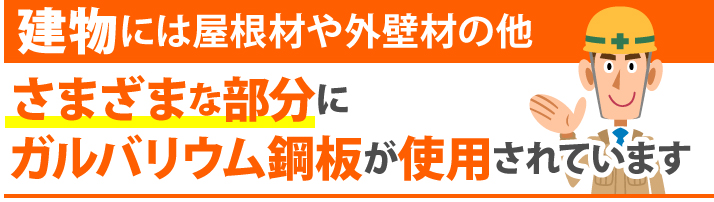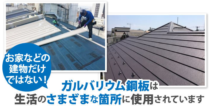 - ●ガルバリウム鋼板は私たちの周りや住居の至る所で使用されています。その信頼性・実績は非常に高いです
