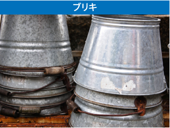 同様に、スズでめっきされたものをブリキと呼びます。スズは体内に入ってもすぐに排出される性質を持っているため、缶詰などの容器にはブリキが使用されていたそうです。