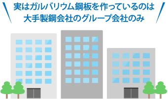 - ●大手製鋼会社のグループによりガルバリウム鋼板は製造されています