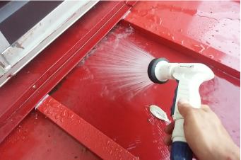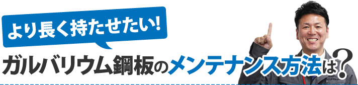 - ●ガルバリウム鋼板のメンテナンスの基本は水による洗浄です。特に雨の当たらない部分を重点的に洗浄しましょう