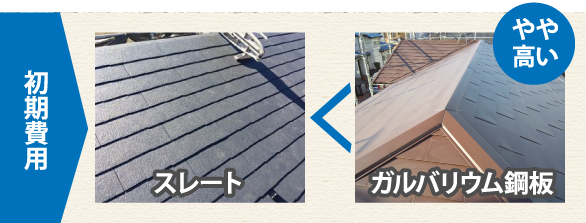 →スレートからガルバリウム鋼板屋根へのカバー工法・葺き替えについてはこちら