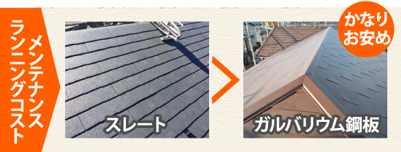 現在スレート屋根からのリフォームももちろん可能です。ガルバリウム鋼板なら軽量なのでカバー工法でも負担になりません。