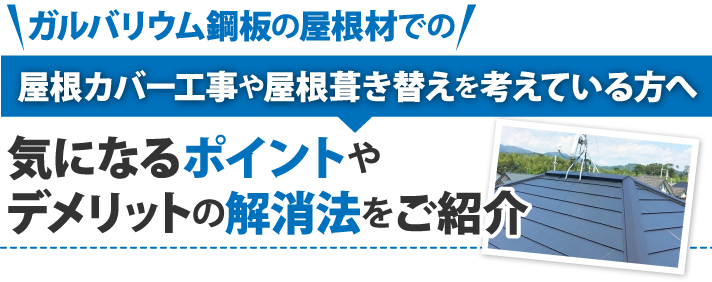 「重量のある瓦屋根から軽量なガルバリウム鋼板の屋根材に葺き替えたい」、「スレート屋根をガルバリウム鋼板を使用して屋根カバー工事を行いたい」「ガルバリウム鋼板の屋根材はどれを使用すれば良い?」など、ガルバリウム鋼板についての様々な疑問・ご希望についてなんでもご相談ください。