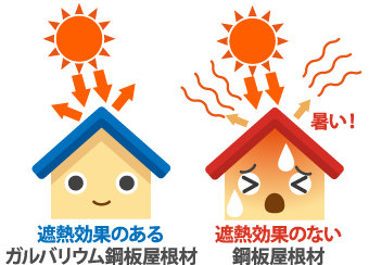 →ガルバリウム鋼板屋根の遮熱性・断熱性について詳しくはこちら