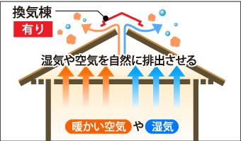 問題となるのが結露です。断熱材が設置していなかったり、不十分であった場合は追加で小屋裏に設置する必要があります。また、換気棟を設置することで適切な排気が行われることで、湿気も抜けていく為、非常に有効な結露対策となります。