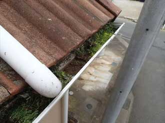 砂や土が溜まってしまったところに植物の種などが運ばれてくると、雨樋の中で発芽し、さらに流れを堰き止めてしまうことになります。 目で見て確認できるくらい植物が育っているということは少なくとも先の季節の頃から雨樋が詰まっていたということになります。