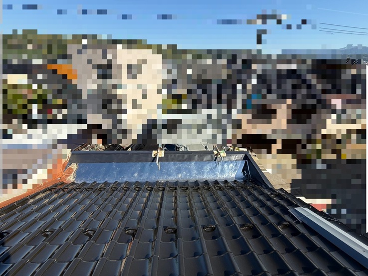 熊本市西区で瓦屋根の葺き直し工事|出隅の捨て水切りを正しく施工し適切な雨仕舞に!