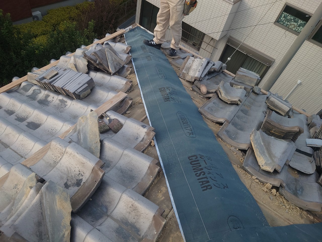 明石市で隅棟の雨漏りを根本修理|いぶし瓦を一度解体し防水強化で復旧