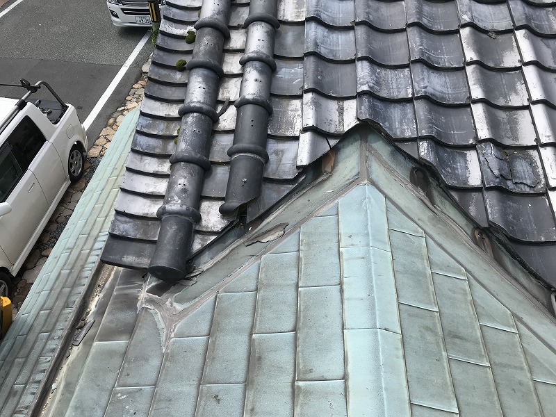 【金沢市】雨漏り修理!瓦屋根のズレ補修、瓦屋根の取り合い部分と立ち上がり部分の板金をステンレスへ