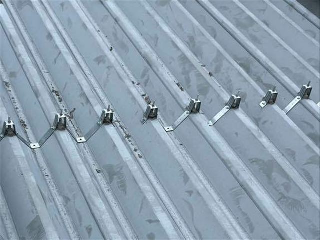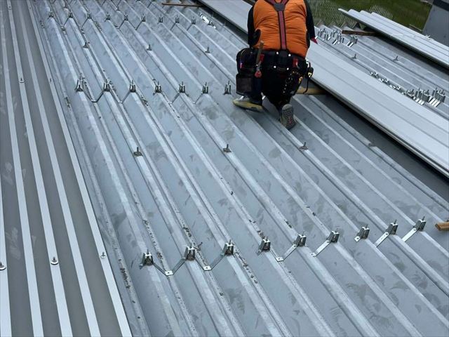 周南市で折板屋根カバー工事開始!改修用タイトフレームとW面戸の設置