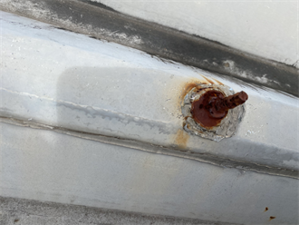 ボルトで固定している折板屋根の場合、ボルトから錆びてくるケースが非常に多いので、特に注意してみてあげましょう。ボルトの錆びを防ぐための樹脂製のキャップもあるのですが、紫外線でひびわれて風に飛ばされてなくなってしまうことも多いので、ここも気をつけてあげましょう。