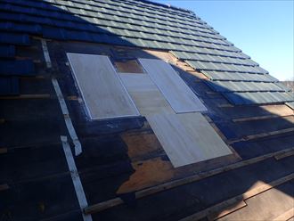 もともとが隙間の多い「バラ板」だったため、野地板を補強することで建物の揺れにも強くなります。