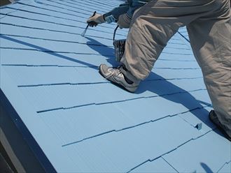 屋根塗装で日光を反射するまでになりました。屋根の輝きをを見るといかにも遮熱塗料という感じがします。