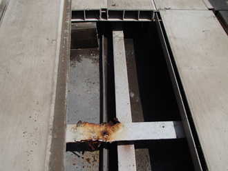 またバルコニーの場合、排水口回りの劣化は大量の雨漏りの原因になりますので、防水層だけでなく排水ドレンの劣化や防水層と排水口との取り合い部分の劣化も要チェックです。排水ドレンを取り外し交換するのは躯体を傷つける恐れもありますので、改修ドレンを差し込んで内部までカバーする施工で雨漏りを防ぎます。