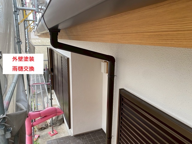 雹被害からの雨樋の復旧。ついでに外壁塗り直し