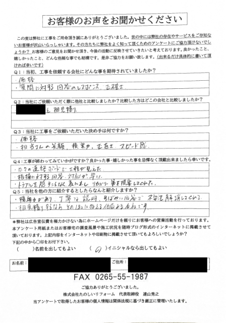 駒ヶ根市のお客様に工事前のアンケートに答えていただきました!