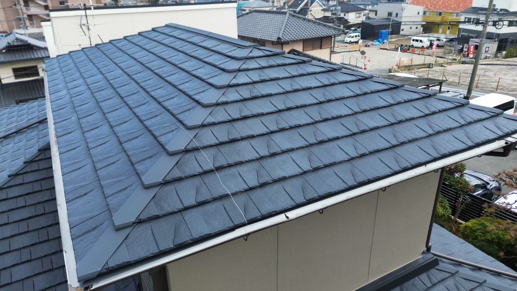 瓦をすべて下ろして新しい下地から作り直す「葺き替え工事」をしていただいたので、屋根が見違えるほど綺麗になりました!